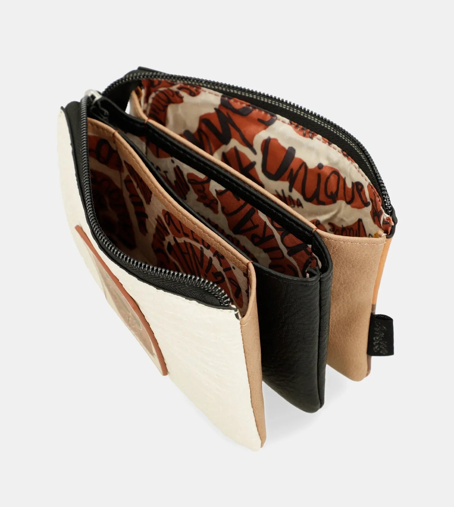 Αυτό το πορτοφόλι διαθέτει φερμουάρ για ασφαλές κλείσιμο και περιλαμβάνει 3 ξεχωριστές εσωτερικές θήκες, όλες επενδεδυμένες. Επιπλέον, υπάρχει εξωτερική τσέπη στο πίσω μέρος για επιπλέον αποθήκευση. Οι λεπτομέρειες, όπως πριτσίνια, κοψίματα και καρφίτσες, προσδίδουν μια ανανεωμένη παραδοσιακή αισθητική.