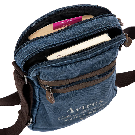 Η Avirex είναι μια εκλεπτυσμένη και ανθεκτική τσάντα ταχυδρόμου, σχεδιασμένη για τον σύγχρονο άνδρα που εκτιμά το στιλ και τη λειτουργικότητα. Κατασκευασμένη από χειροποίητο stone-washed καμβά και εμπλουτισμένη με λεπτομέρειες από αυθεντικό δέρμα, ενσαρκώνει την αυθεντική ταυτότητα της Avirex.
