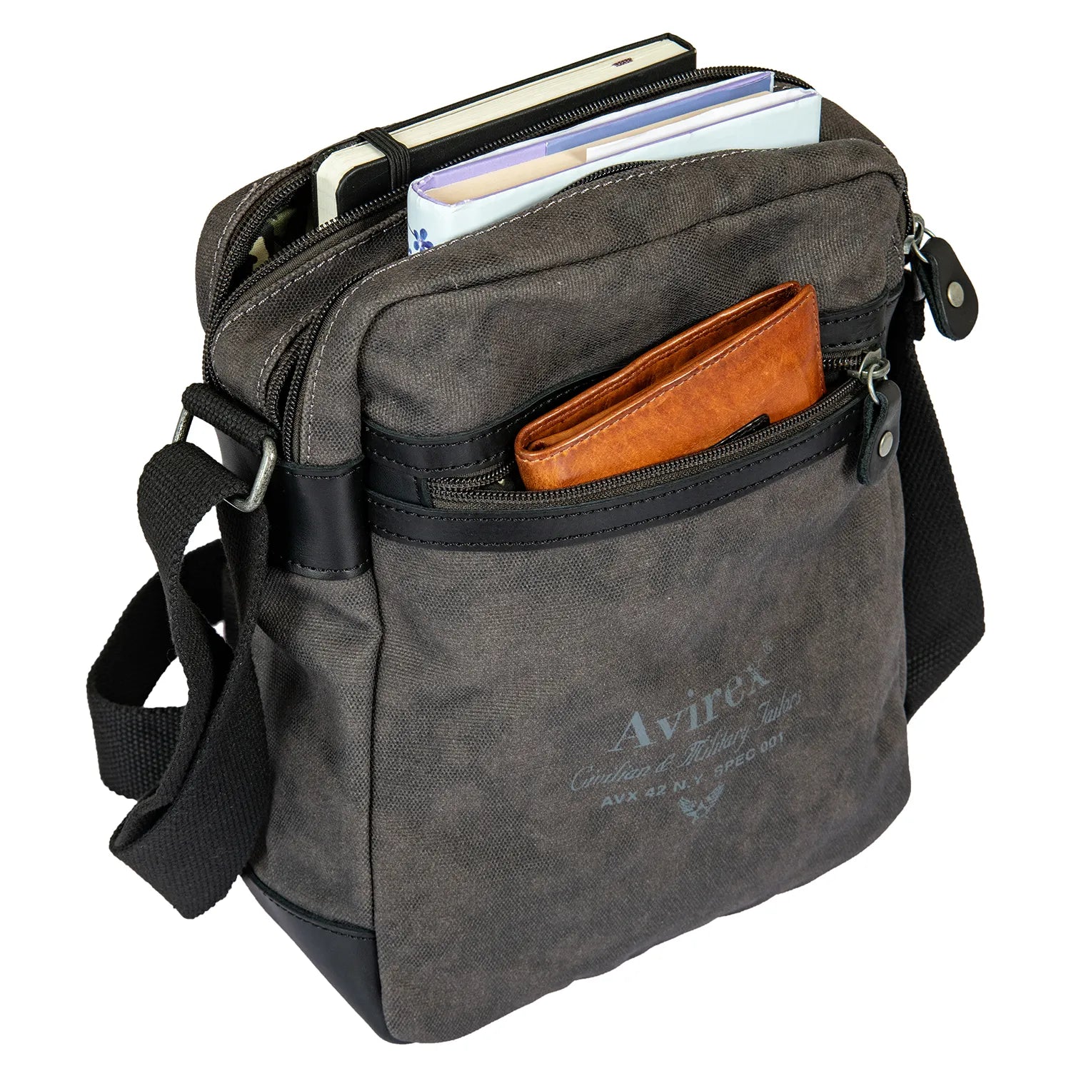 Η Avirex είναι μια εκλεπτυσμένη και ανθεκτική τσάντα ταχυδρόμου, σχεδιασμένη για τον σύγχρονο άνδρα που εκτιμά το στιλ και τη λειτουργικότητα. Κατασκευασμένη από χειροποίητο stone-washed καμβά και εμπλουτισμένη με λεπτομέρειες από αυθεντικό δέρμα, ενσαρκώνει την αυθεντική ταυτότητα της Avirex.