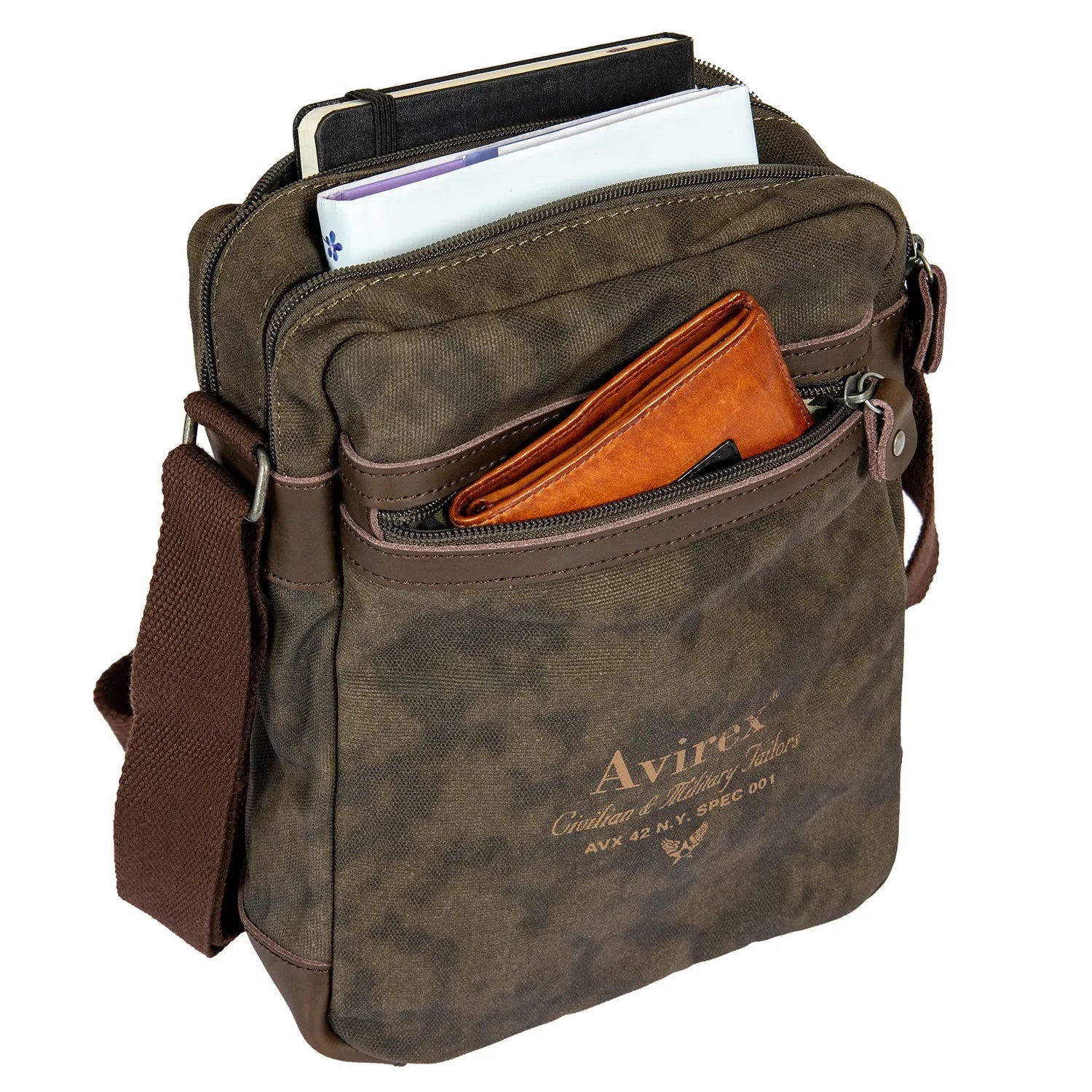 Η Avirex είναι μια εκλεπτυσμένη και ανθεκτική τσάντα ταχυδρόμου, σχεδιασμένη για τον σύγχρονο άνδρα που εκτιμά το στιλ και τη λειτουργικότητα. Κατασκευασμένη από χειροποίητο stone-washed καμβά και εμπλουτισμένη με λεπτομέρειες από αυθεντικό δέρμα, ενσαρκώνει την αυθεντική ταυτότητα της Avirex.