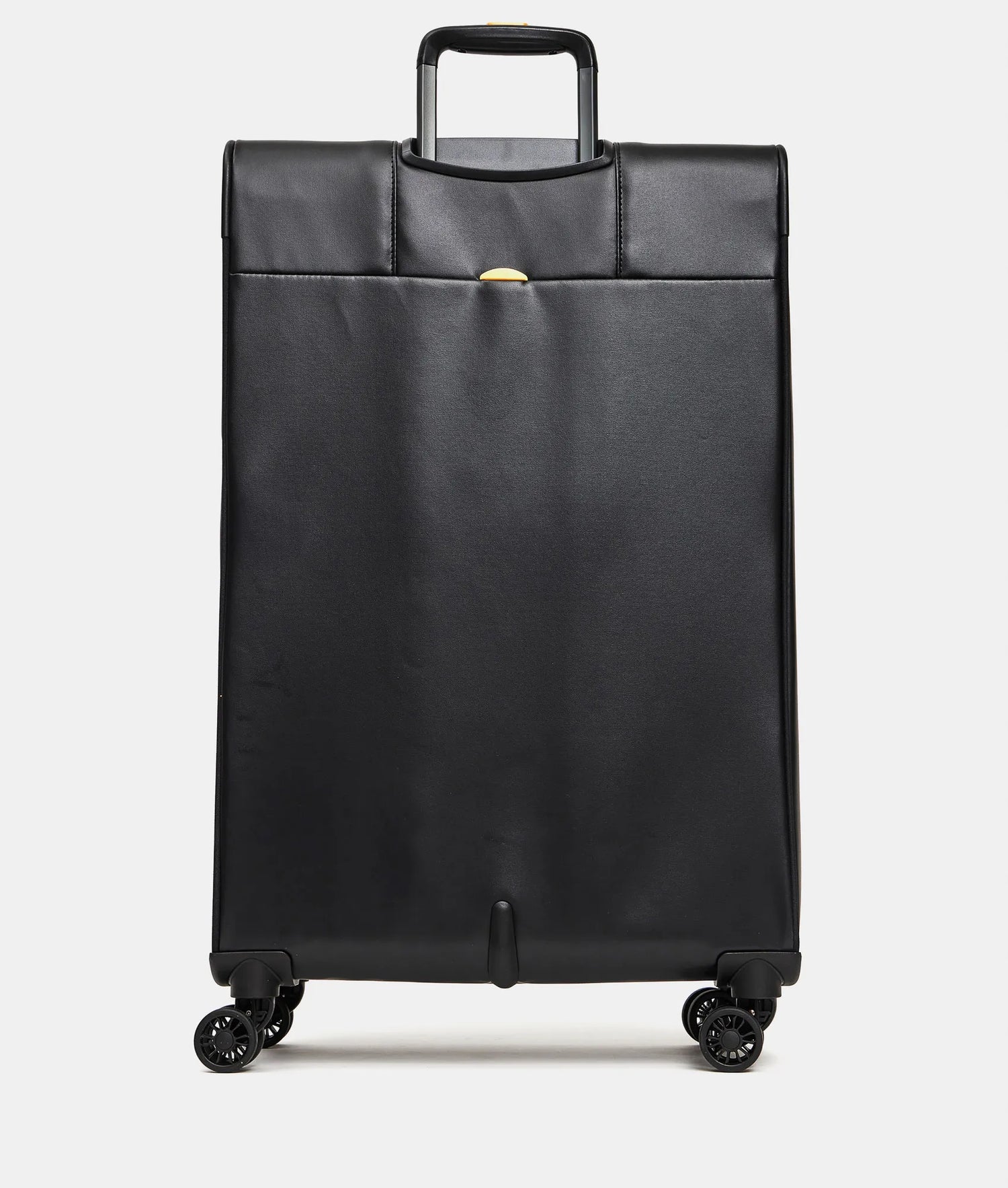 Η συλλογή ECO COATED της Mandarina Duck συνδυάζει καινοτομία, πρακτικότητα και βιωσιμότητα, προσφέροντας αξεσουάρ ταξιδιού κατασκευασμένα από 100% ανακυκλωμένο πολυεστέρα από πλαστικά μπουκάλια (PET). Αυτή η μεγάλη επεκτάσιμη μαλακή βαλίτσα (Soft Trolley L - 78 cm) είναι ιδανική για όσους αναζητούν άνεση, χωρητικότητα και λειτουργικότητα στις μετακινήσεις τους.
